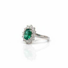 Anello in Oro Bianco con Smeraldo Ovale 1,18ct e Diamanti
