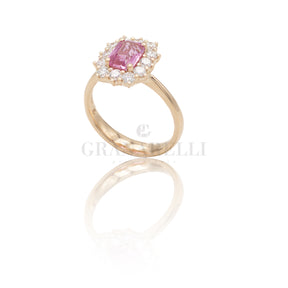 Anello in Oro Rosa con Zaffiro rosa 1.32kt e Diamanti