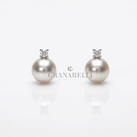 Orecchini boccola Perla Australiana Gold Ø11 mm e Diamanti
