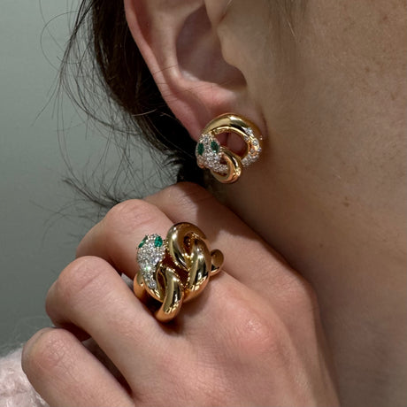 Orecchini Serpente Oro Rosa Smeraldi e Diamanti Crivelli