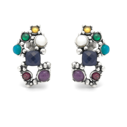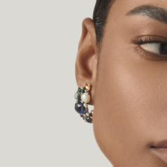 Mono-orecchino hoop zirconi verde lime e medaglie pendenti