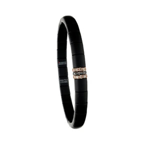 Bracciale pura piccolo in ceramica nera satinata con 1 barretta diamanti neri oro bianco e 2 barrette diamanti brown e oro rosa misura uomo. Bracciale in ceramica nera lucida Gioielli flessibili e facili da indossare grazie all’estensione della molla che dona loro un’ottima vestibilità, per un classico rivisitato in chiave moderna, fresco e frizzante.