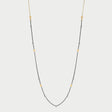 Collana lunga 95 cm, con catena verniciata e in argento dorato, arricchita da zirconi nudi colorati pendenti e medagliette. Un mix perfetto di luce e stile boho-chic.
