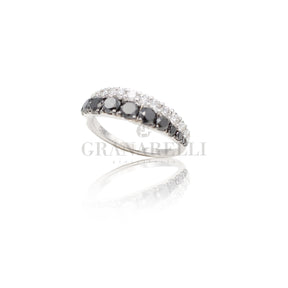 18kt White Gold Band Ring with Brilliant Cut White Diamonds.