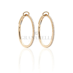 18 ct rose gold and white diamond hoop earrings.