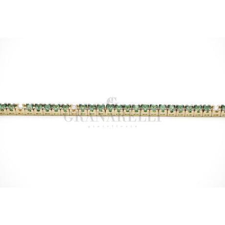 Yellow gold tennis bracelet with emeralds and white diamonds