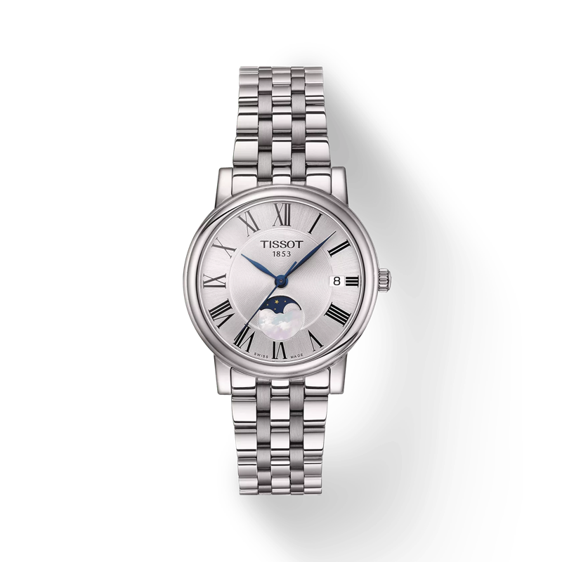 Il Tissot Carson, un capolavoro di orologeria da indossare ovunque e in ogni occasione, è il compagno ideale per rendere ogni momento un momento clou della tua vita. Con il suo design elegante, il gusto sicuro e le indicazioni delle fasi lunari, la nuova collezione Tissot Carson Premium Lady Moonphase colpisce sempre nel segno.