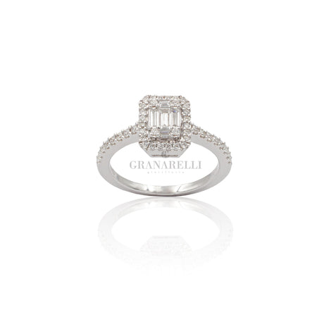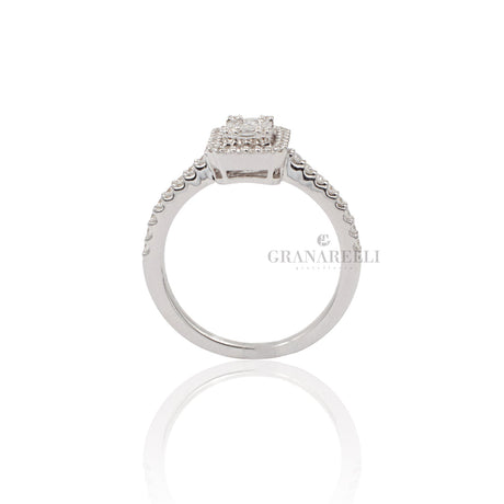 Anello Solitario 0.30 con Brillante laterale Oro Bianco