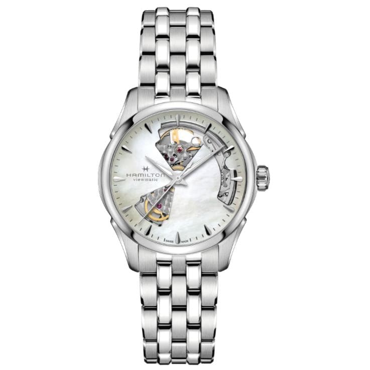 The 36mm Jazzmaster Open Heart is a perfect blend of contemporary sophistication and exceptional craftsmanship. The precision-cut openwork design allows you to see the Hamilton Swiss-made automatic movement in action as it ticks away the time and accompanies every important moment in our lives. Multiple dial and strap combinations crafted from high-quality materials offer the modern woman a wide range of choices.