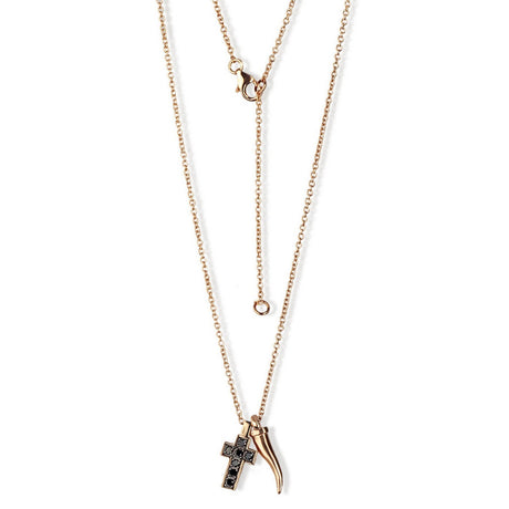 Collana Oro Giallo 9 kt Croce con Diamanti Neri e Cornetto