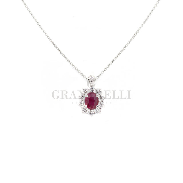 Girocollo in Oro Bianco 18 kt con Rubino e contorno di Diamanti bianchi.