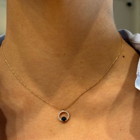 Girocollo Cerchio e Zaffiro Blu in Oro rosa
