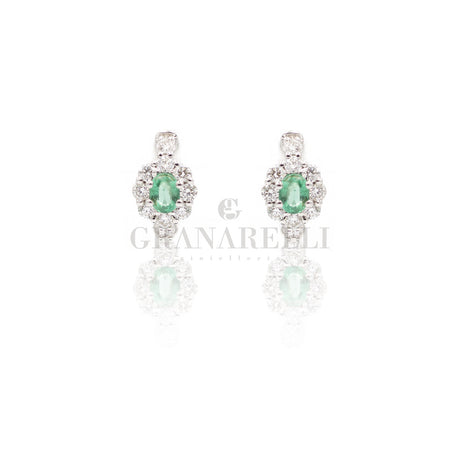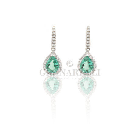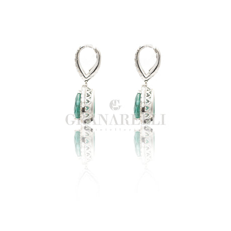 Orecchini con smeraldi Goccia e Diamanti In Oro Bianco