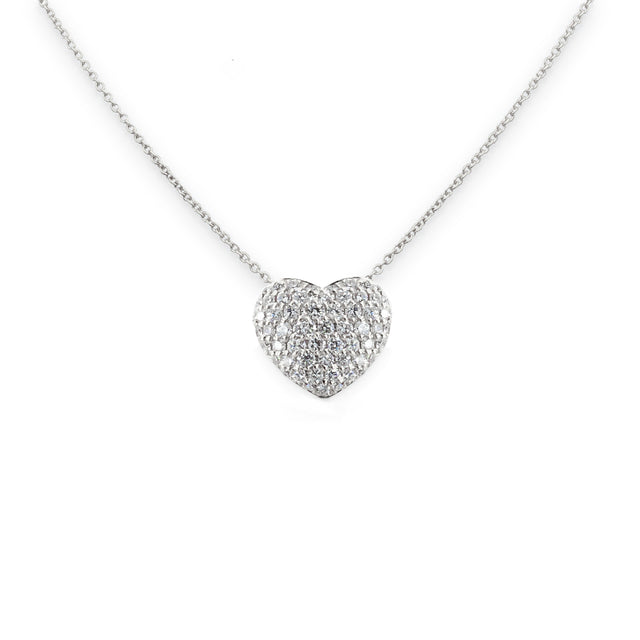 18kt White Gold Choker with Heart Pendant pavé of Brilliant-cut White Diamonds.