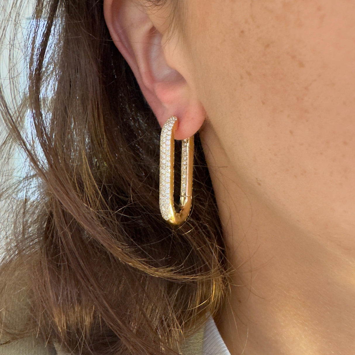 Hoop earrings in 18 kt yellow gold and white diamonds.