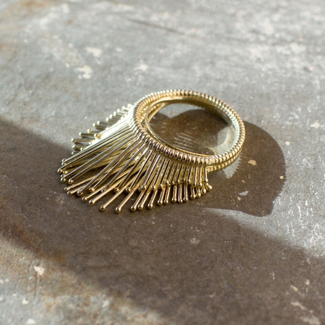 Ciascun elemento si muove in armonia con gli elementi adiacenti, producendo forme mobili e sinuose. Gioiello realizzato interamente in Italia in Oro Giallo 9 carati.