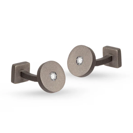 BRACCIALE GROUMETTE NAUTICA MINI IN TITANIO CON DIAMANTI BLACK E LACCIO GRIGIO INTRECCIATO