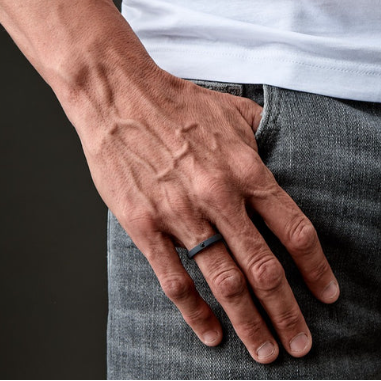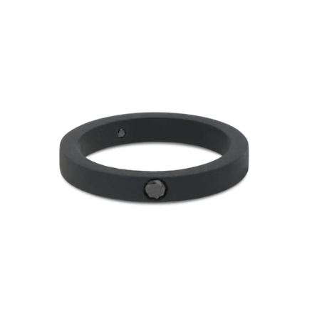 SOLITARIO A FASCIA PIATTA IN TITANIO NERO CON DIAMANTE BLACK DA 10 PUNTI