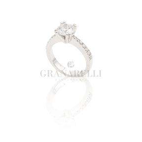 18kt white gold ring with Heart Cut Blue Sapphire and Brilliant Cut White Diamonds.