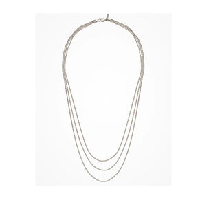 Collana in argento e placcata oro rosa a tre file con piccoli elementi cilindrici, per un effetto luminoso ed elegante.