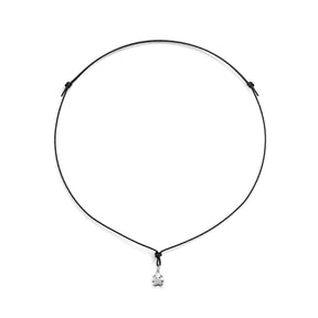 Ciondolo sagoma bimba in oro bianco 18kt con cordino ecologico nero.