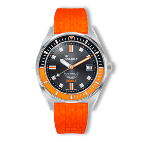 L'evoluzione del design va oltre la cassa per includere gli elementi più estetici dell'orologio. Il quadrante, ora caratterizzato dal nuovo logo Matic-S, presenta indici aggiornati e accenti arancioni lungo il rèhaut interno. Gli orologi sono abbinati ad un cinturino di gomma stile Tropic con innovativa texture a mosaico.