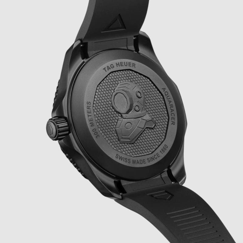 A dive watch with a unique style. Bold yet discreet, the Aquaracer Nightdiver Calibre 5 automatic dive watch features a 43mm DLC-coated steel case and matching ceramic bezel. black. Robust and reliable in all conditions.