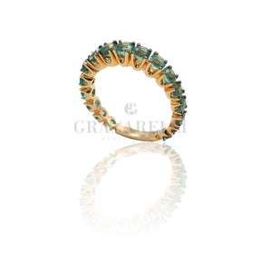 18ct Rose Gold Scalloped Band Ring with Emeralds: synonyms of mastery and excellence.