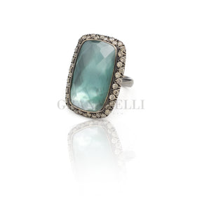 Acquamarina ring with brown brown diamonds in burnished white gold