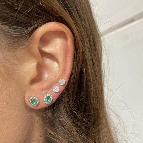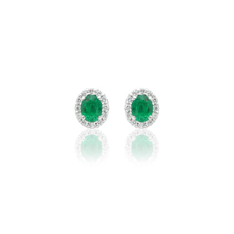 Orecchini a Lobo in Oro Bianco con Smeraldo e Diamanti