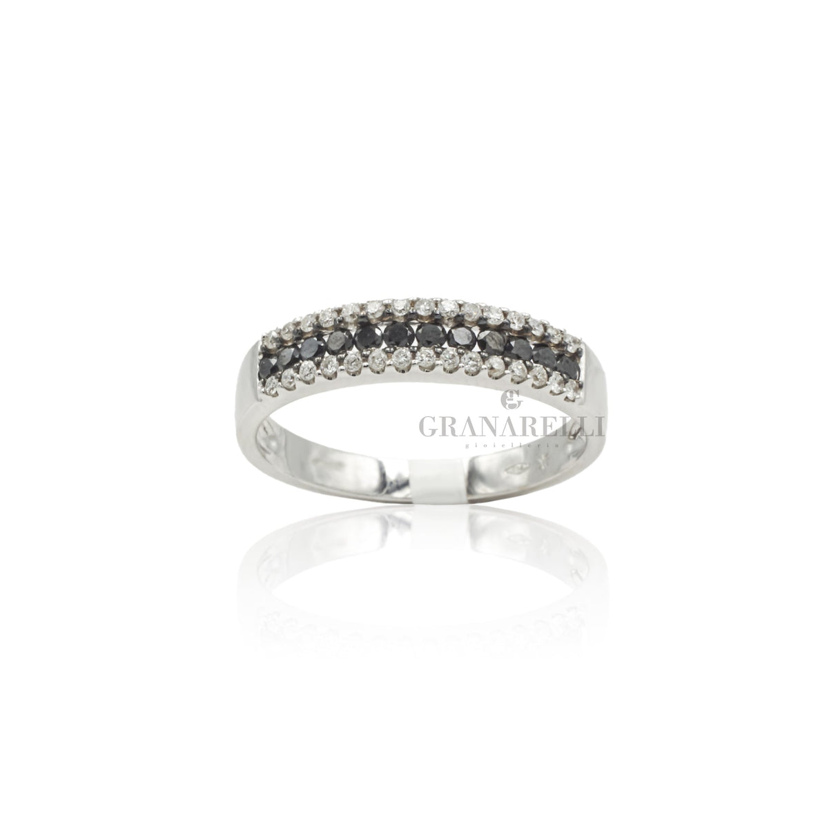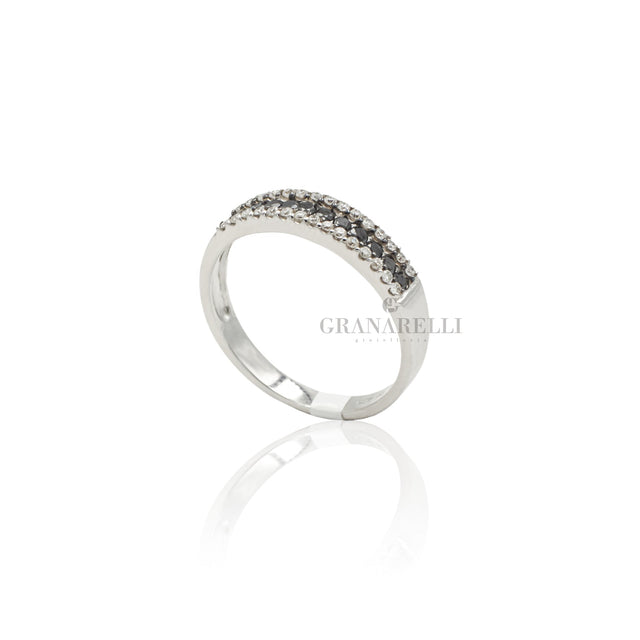 18kt White Gold Ring with three rows of white and black Diamonds.