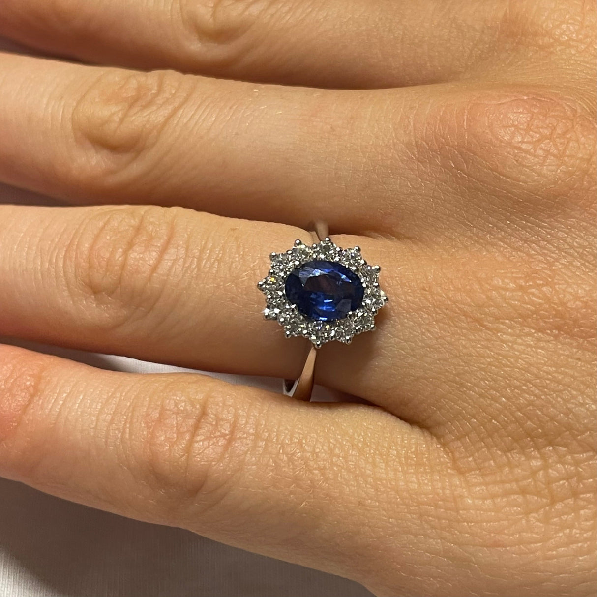 White gold ring with 1.40kt sapphire and diamonds