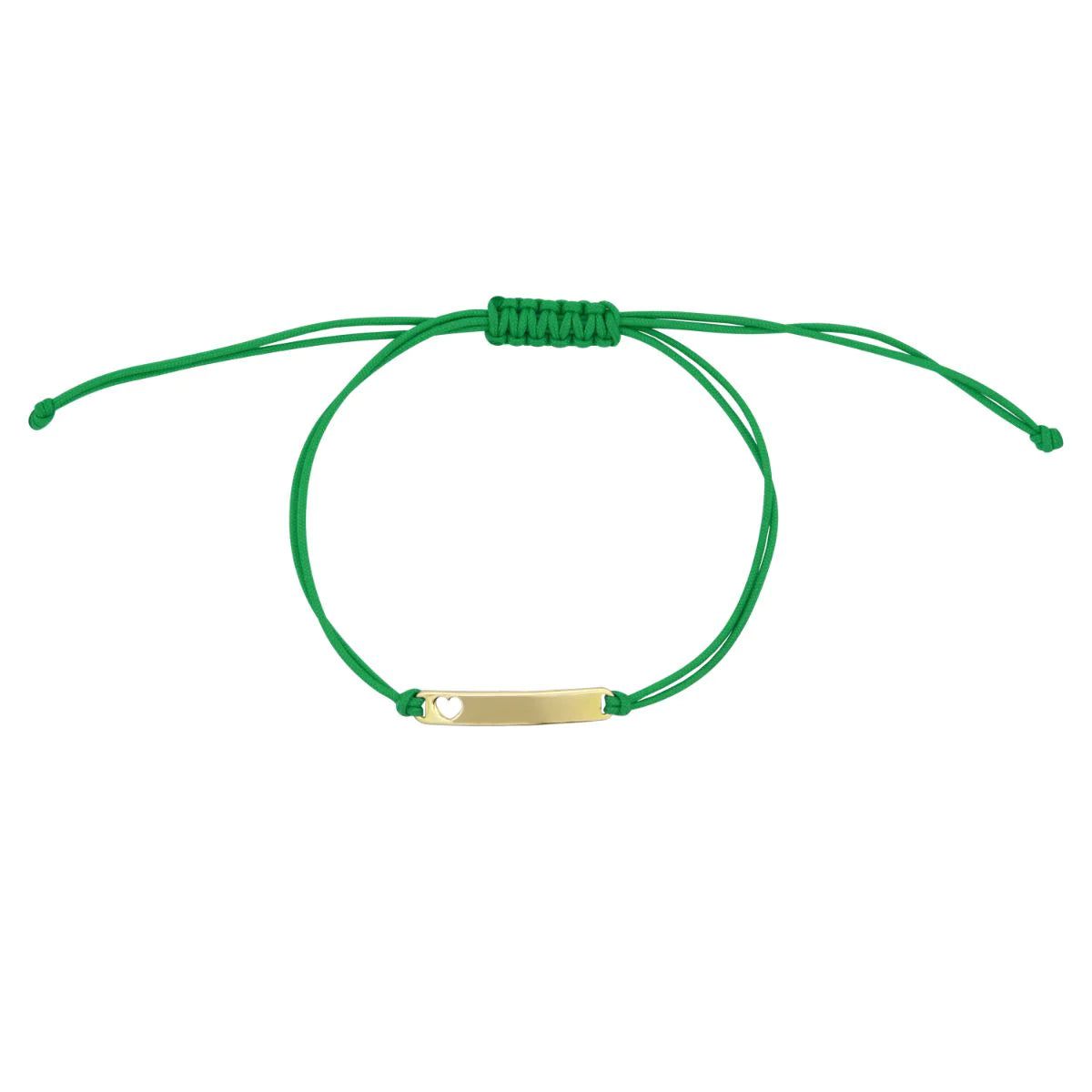 Green fabric anklet and central element in plate with perforated heart