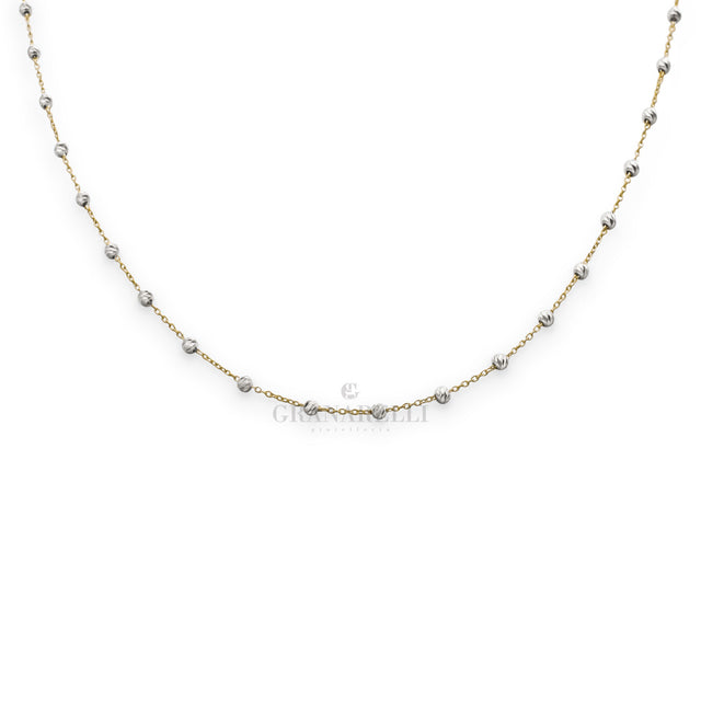 Gold necklace alternating yellow and white 18 kt with chain worked with diamond spheres.