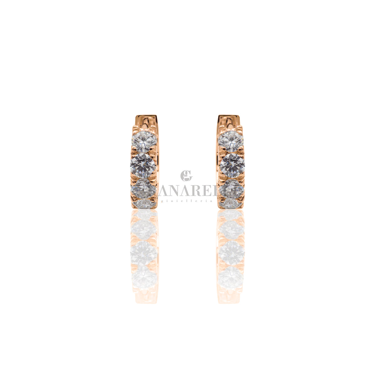 18kt rose gold and white diamond hoop earrings.