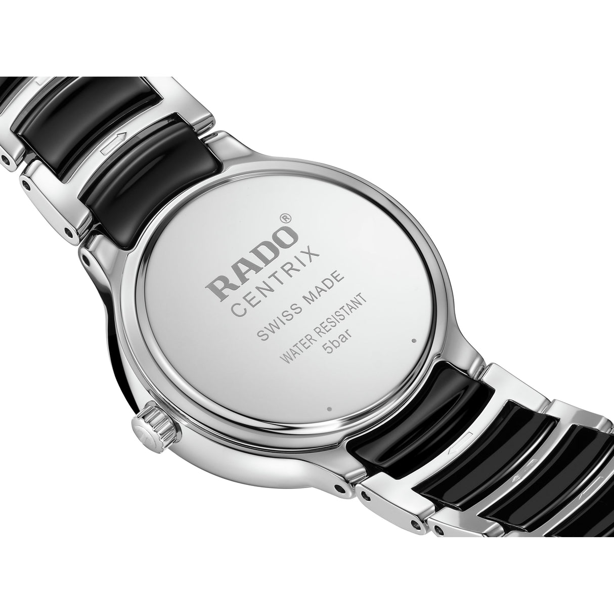 The classic Centrix Quartz Diamonds has been reworked not only technically but also visually. The new model features a rounded sapphire crystal that extends to the edge and a curved case that integrates with the edge of the crystal. The redesigned case lugs and the polished steel bracelet with black high-tech ceramic center links complete the updated aesthetics of this iconic timepiece. The black lacquered dial, set with 4 brilliant-cut diamonds and highlighted by the printed “jubilé” logo, perfectly matches the rhodium-colored hands. Thanks to the R079 caliber quartz movement with PreciDrive and HeavyDrive, the timepiece is characterized by high precision and shock resistance. The watch is water resistant to 50 m.