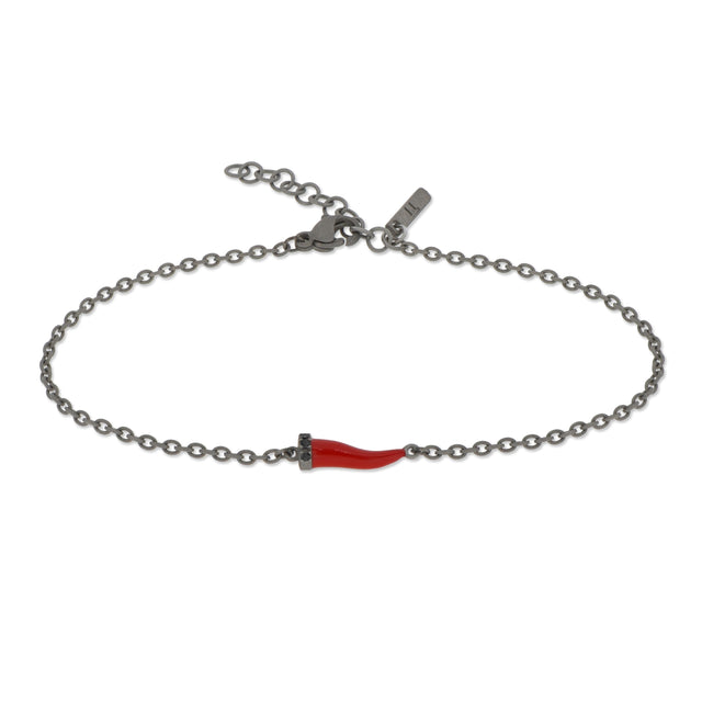 Bracciale in Titanio Cornetto Rosso Diamanti Neri