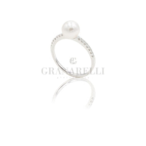 Crivelli ring in 18 kt white gold, with pearl and white diamonds: