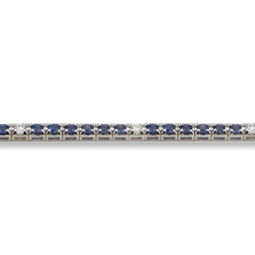 Tennis bracelet diamonds and sapphires in white gold is backordered and will ship as soon as it is back in stock.