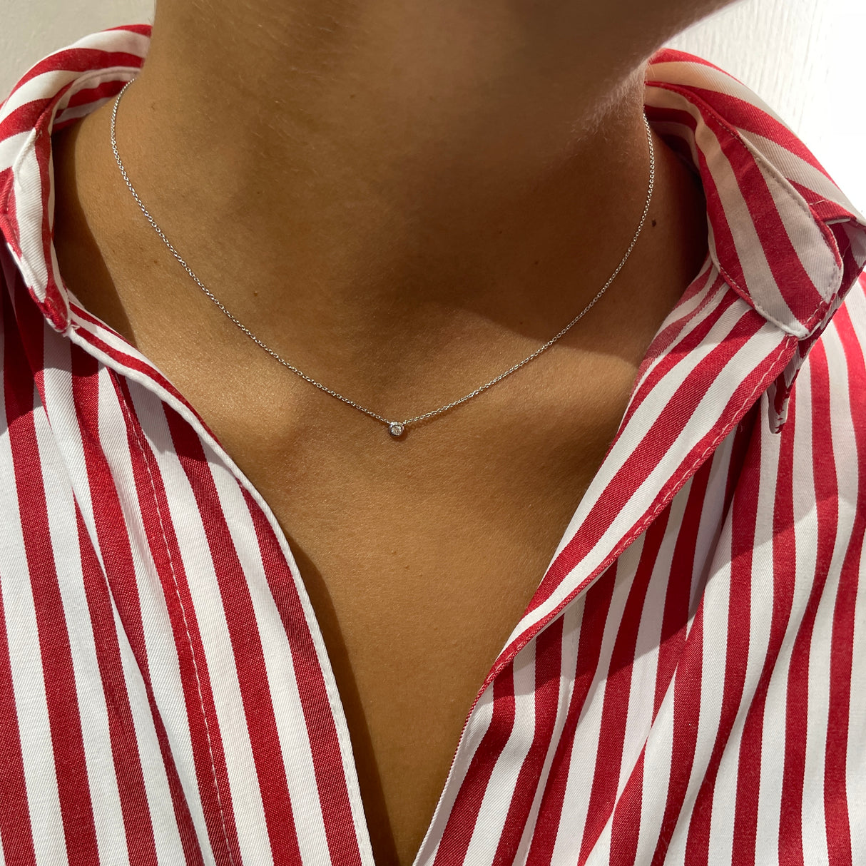 Collana oro bianco 18 kt e diamante bianco taglio brillante.