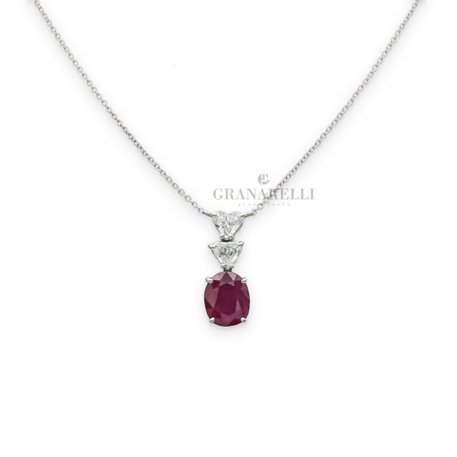 Línea de cuello en la tripulación "LIGHT" 18 KT ORO ROSA DE ROSA CON LA PLAZA DE RUBY CENTRAL Y EL CONTORNO DE DIAMANTE BLANCO.