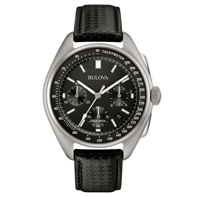 Bulva hizo la historia del espacio el 2 de agosto de 1971, durante la misión Apollo 15, el cronógrafo del piloto lunar (luna), personalizado para las condiciones lunares de los ingenieros de Bulova, se usó en la luna. Bulova Hoy hace historia con la edición especial, el cronógrafo piloto lunar, el modelo de réplica del original actualizado gracias al movimiento exclusivo, la patente de Bulova, el cuarzo de alto rendimiento con una frecuencia de 262 kHz para una precisión sin precedentes. Las características incluyen índices de manos y acero con una super-luz central alojada en una esfera negra, cristal de zafiro antirreflectante, velocímetro y calendario que se encuentran en una caja de acero inoxidable quirúrgica sólida 316L. Se incluyen dos correas intercambiables: una en cuero negro con textura; El otro, un nylon negro con un parche de cuero Nubuck que conmemora la fecha de la Misión (DOM) como 08021971. La presentación del paquete incluye un certificado de autenticidad.