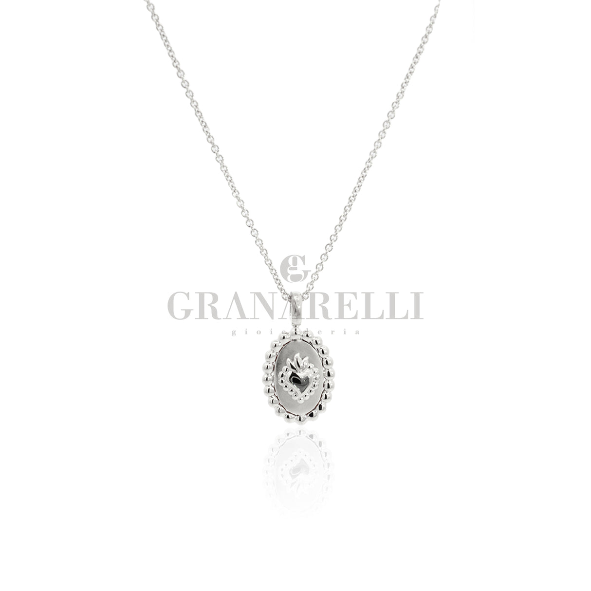 Cuello redondo de oro blanco de 18 kt con madonnina y diamantes blancos.