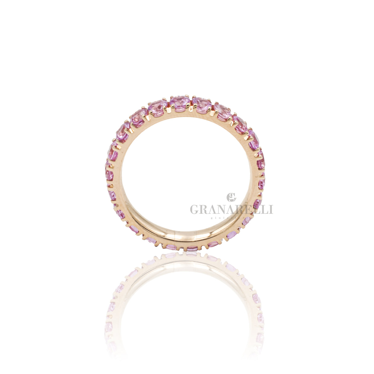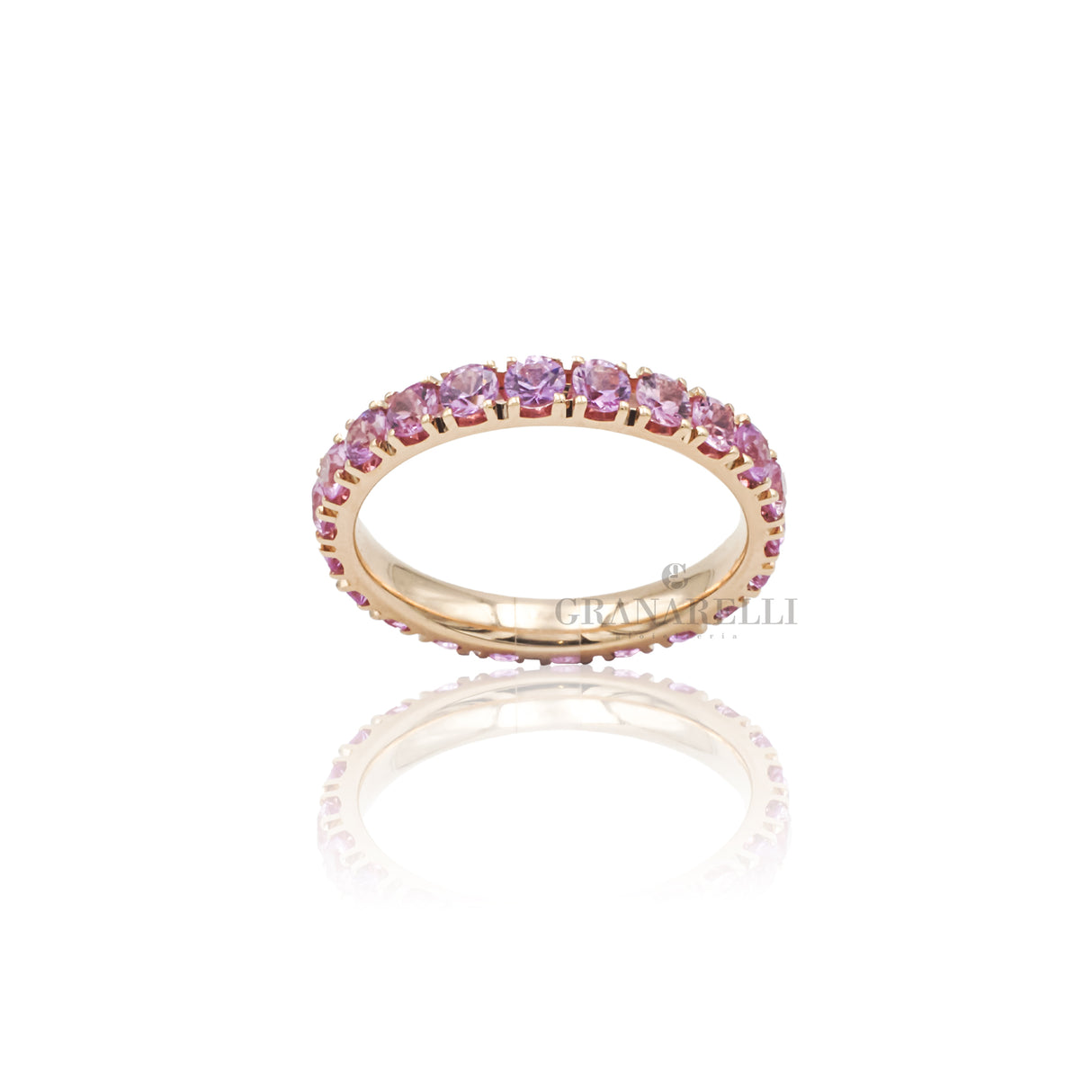 18 kt rose gold ring with round finger ring 22 pink sapphires.