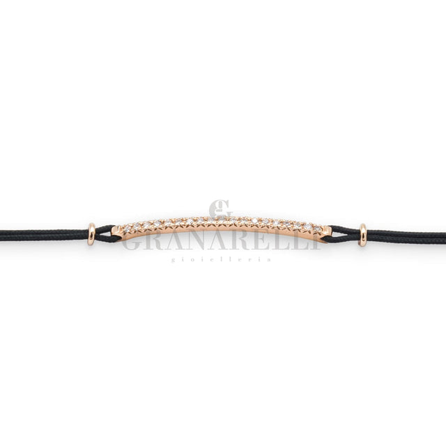 Pulsera con Barra de oro rosa de 18kt y diamantes blancos.en el cordón náutico negro; Con elementos de oro rosa de 18kt.