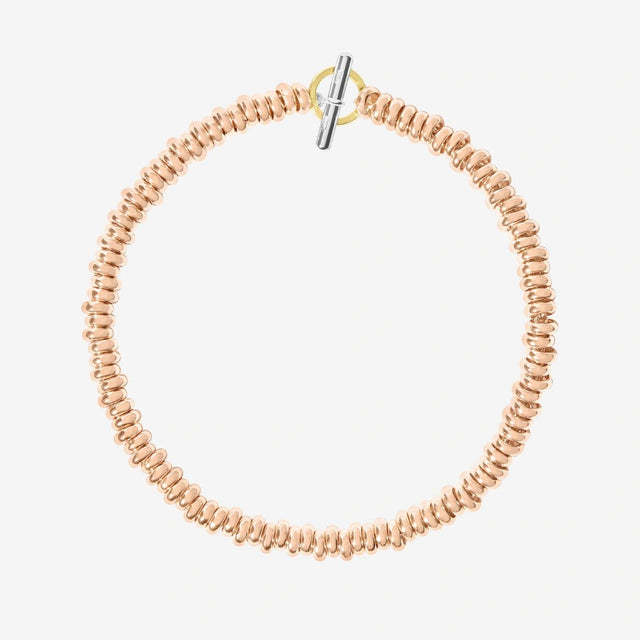 Rose gold rondelle bracelet, 925 silver chain with 18K yellow gold brisè ring. 925 silver needle included.