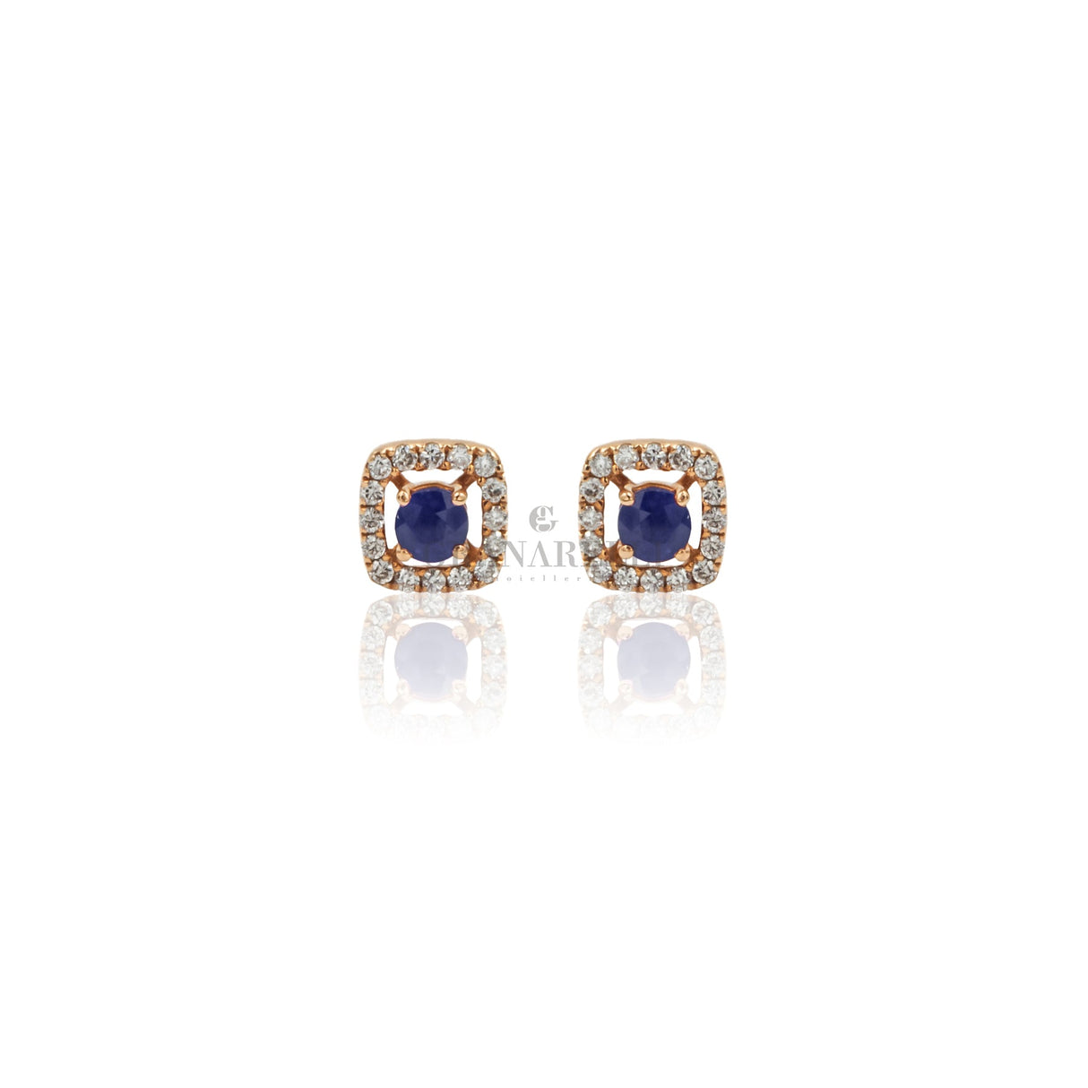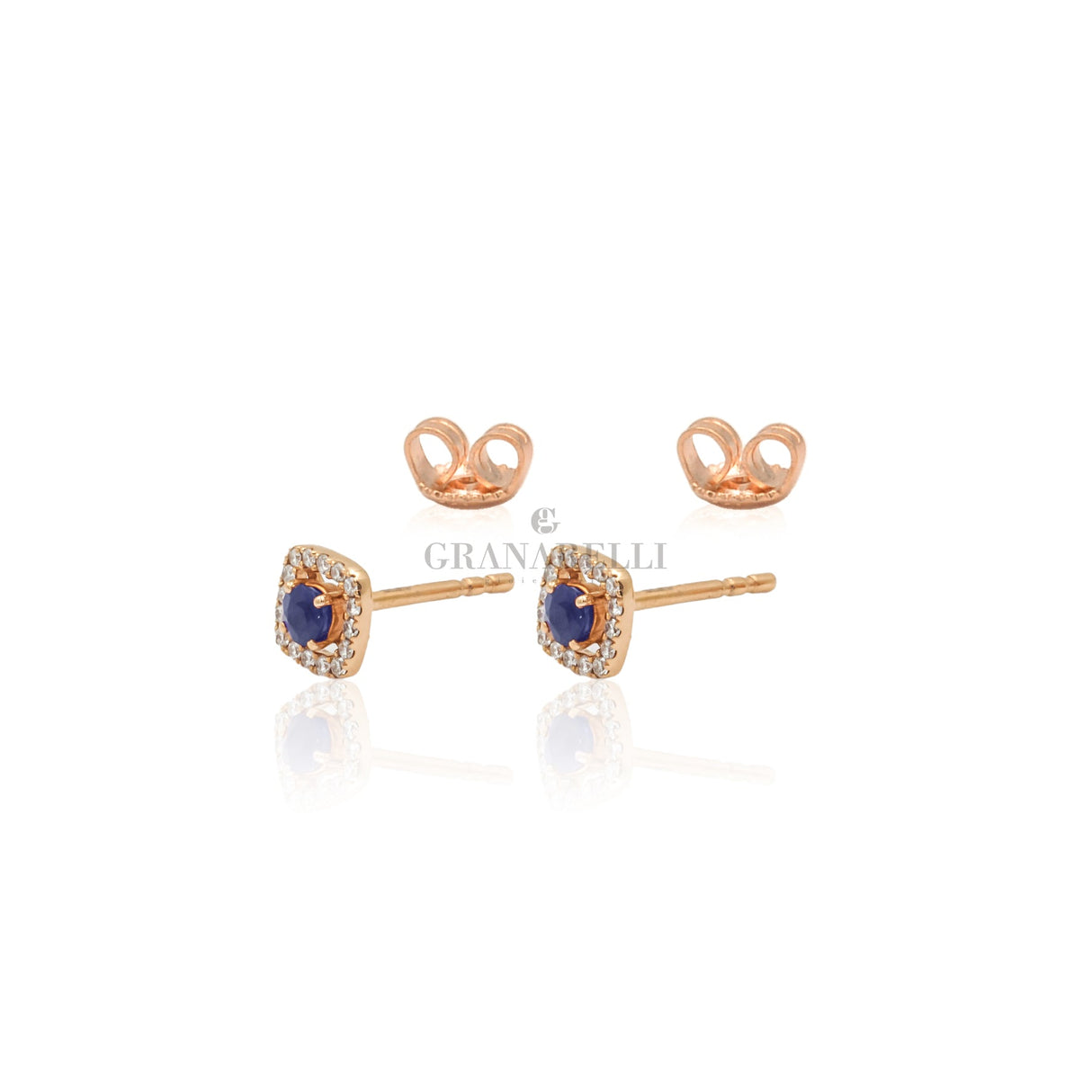 Pendientes en rosa dorado18 kt y diamantes blancos y rubí central.
