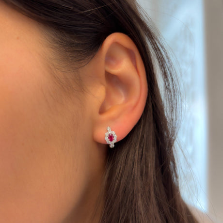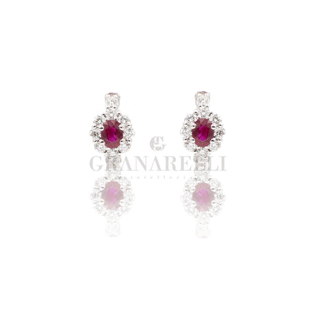 Orecchini Cerchio Rubini e Diamanti in Oro Bianco