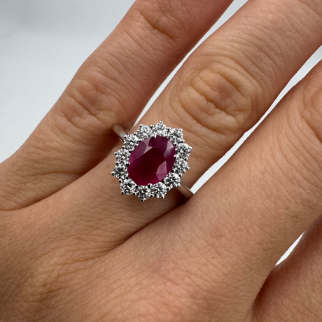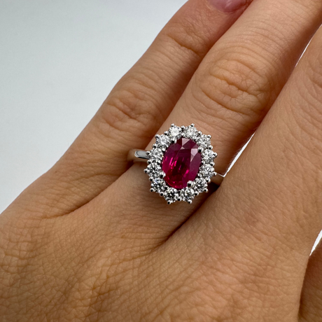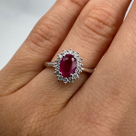 Anello con Rubino 1,42ct taglio Ovale e Diamanti