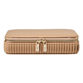 L'astuccio portagioie con cerniera Bella dona opulenza e raffinatezza con il suo esterno liscio in tessuto vegano, i lati perfettamente plissettati e le finiture dorate. All'interno, tre scomparti foderati in LusterLoc™ per i tuoi gioielli, 2 rotoli porta anelli per anelli o orecchini e, nel coperchio, 2 tasche portaoggetti elastiche aggiuntive. Semplicemente splendido.
